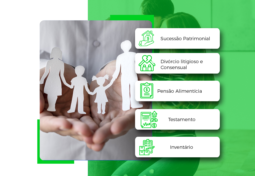 Oferecemos serviços jurídicos com excelência em casos como Divórcio, Pensão alimentícia, Guarda e outros.